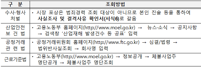 시정명령을 받은 기업(기관・단체) 또는 「근로기준법」에 따라 명단이 공개되거나 종합신용정보집중기관에 자료가