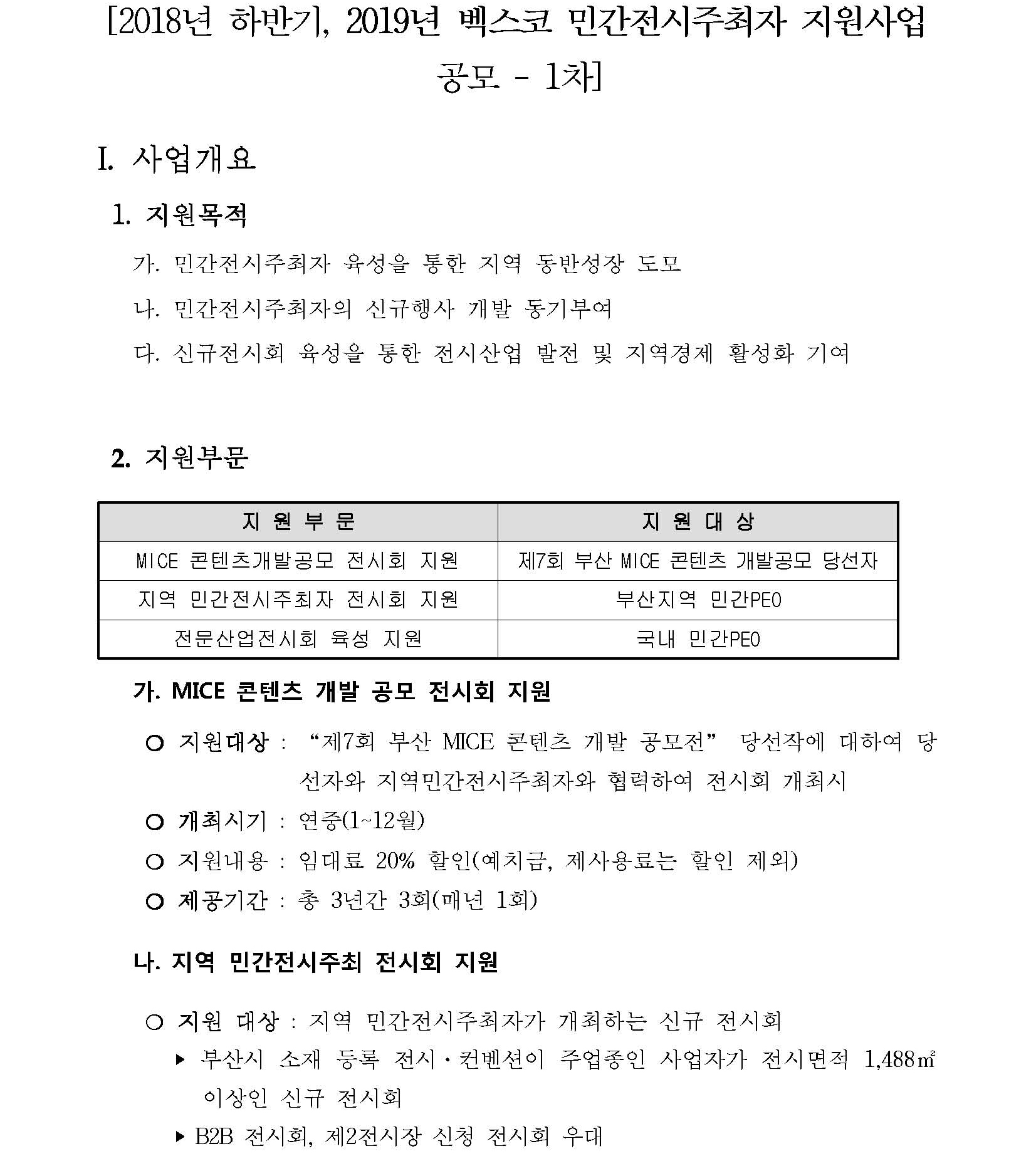 [국내참가지원](벡스코) 2018년 하반기, 2019년 벡스코 민간전시주최자 지원사업 공모 - 1차