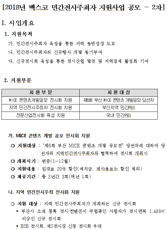 [국내참가지원](벡스코) 2018년 벡스코 민간전시주최자 지원사업 공모-2차(연장)