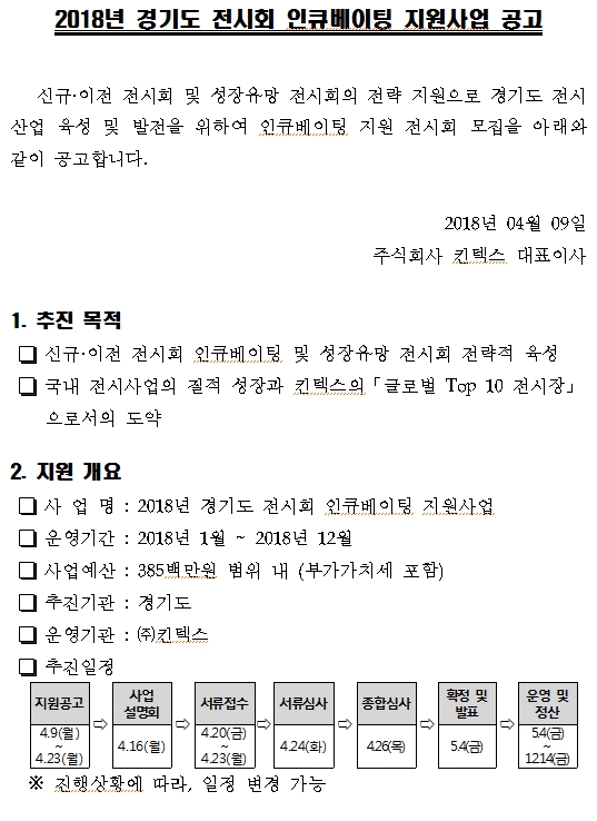 [KINTEX] 2018년 경기도 전시회 인큐베이팅 지원사업 공고