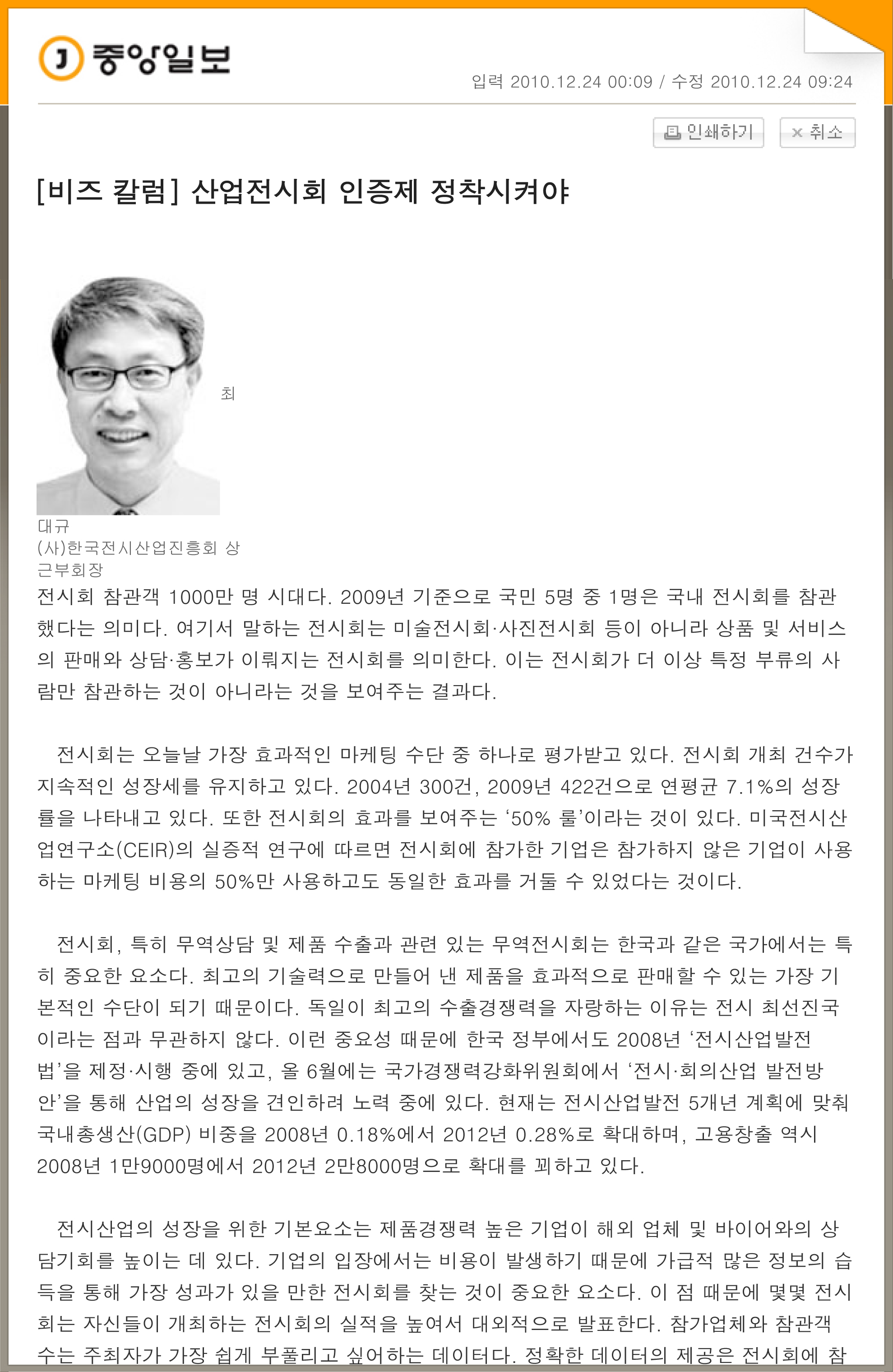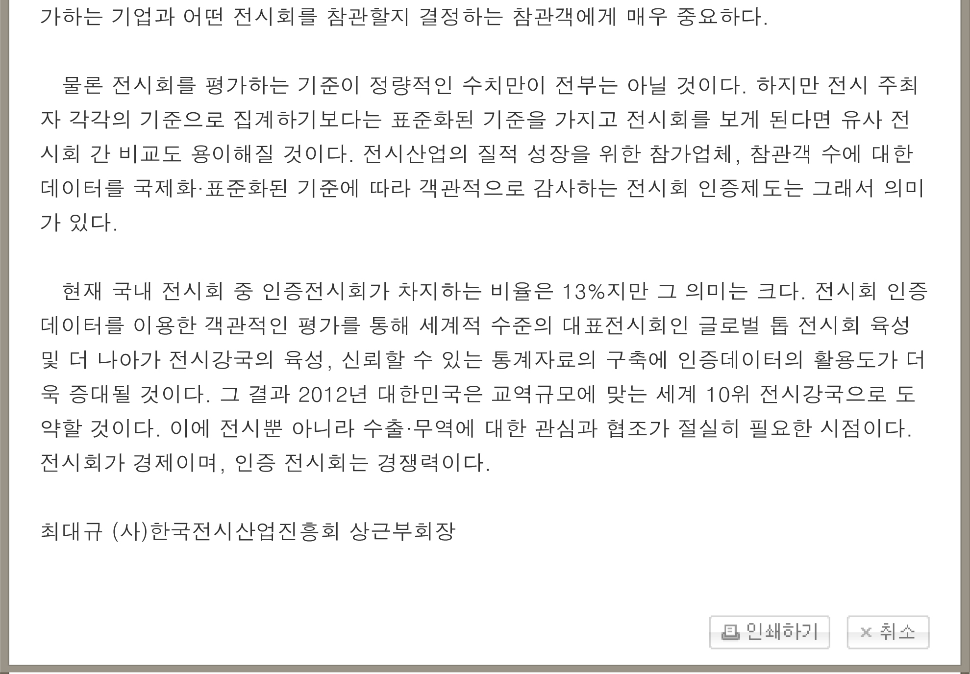 제목 | [비즈 칼럼] 산업전시회 인증제 정착시켜야 |