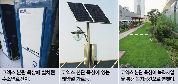 코엑스는 전력, 가스, 물 비용만 연 155억원(2008년)에 달하는, 국내 5위 규모의 대형 단지다. 코엑스의 첫째 목표는 친환경 재생 에너지인 태양광 발전과 친환경 LED 조명기기를 사용하는 것이다. 이를 통해 코엑스가 사용하는 연간 전체 사용량(11만3908Mwh, 2008년)의 5%를 대체할 계획이다.