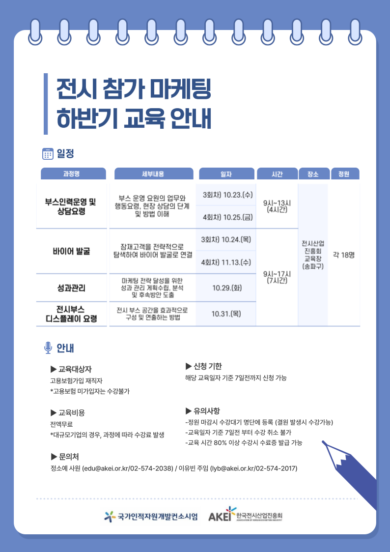 - 교육홍보팀 정소예 사원 (02-574-2038, edu@akei.or.kr)