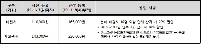 ※ 단, 연속 참가자가 본회 회원사 단체 할인 대상일 경우 해당자 참가비 10%를 우선 적용 후 단체 할인 20%를 추가 적용