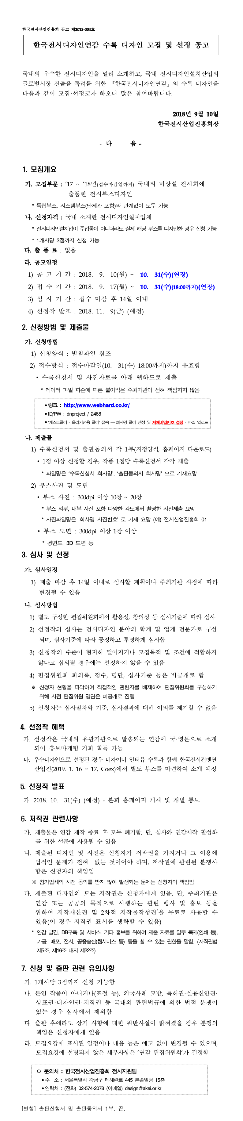 제목 | [공고](진흥회) 한국전시디자인연감 수록 디자인 모집 및 선정 공고 |