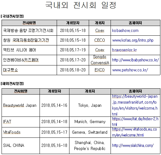 제목 | [안내](진흥회) 2018년 5월 3주 전시회 일정 안내 |