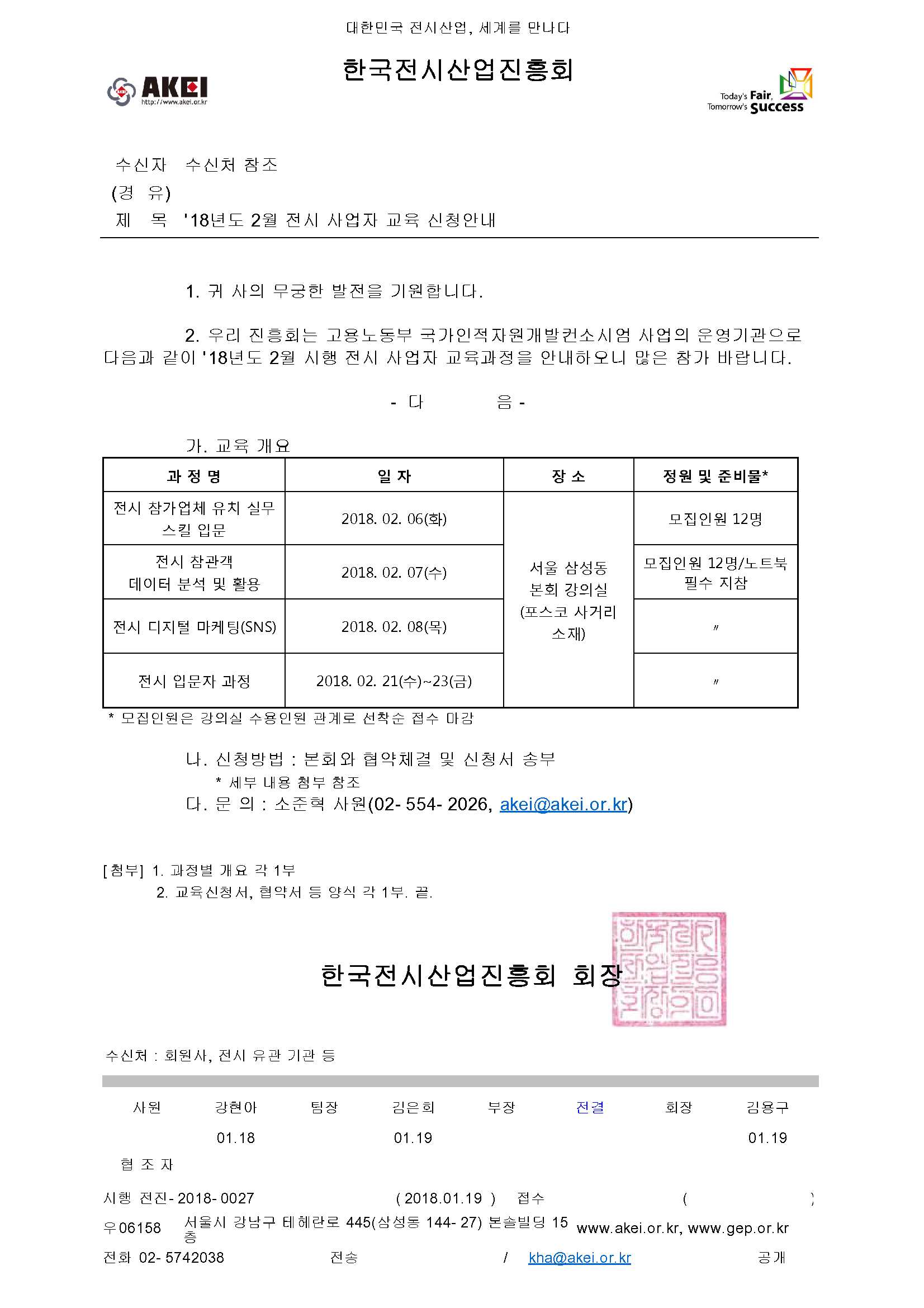 - [첨부 1] 2월_전시_사업자_교육_개요0122.hwp (46.5K) 76회 다운로드 | DATE : 2018-01-22 00:00:00