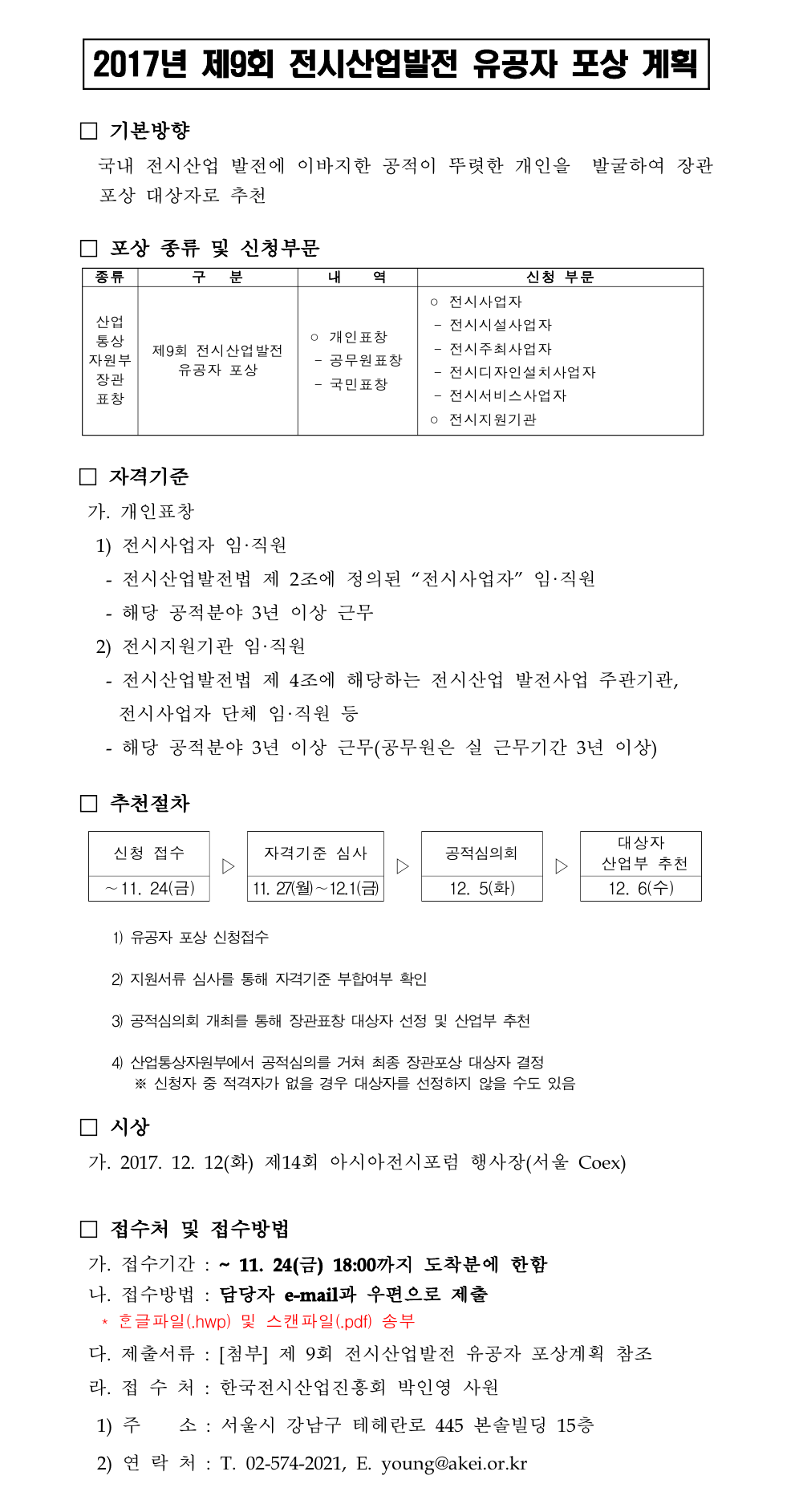 [공고](진흥회) 2017년 제9회 전시산업발전 유공자 포상 계획