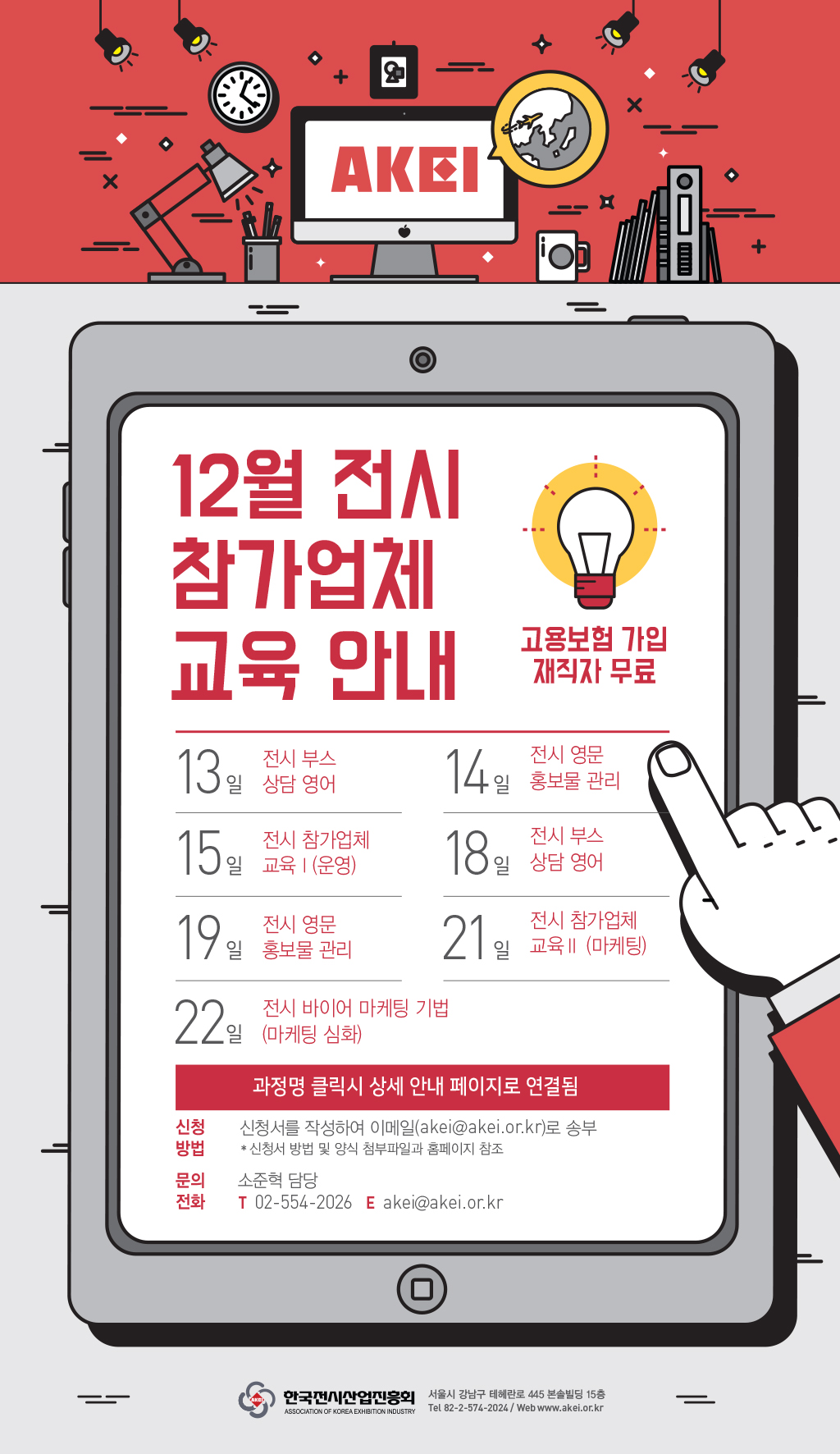 [안내](진흥회) 12월 전시 참가업체 교육 신청 안내(고용보험 가입 재직자 무료)