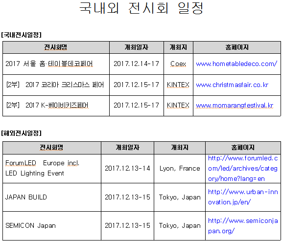 제목 | [안내](진흥회) 2017년 12월 2주 전시회 일정 안내 |