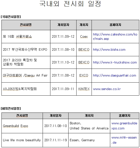 [안내](진흥회) 2017년 11월 2주 전시회 일정 안내