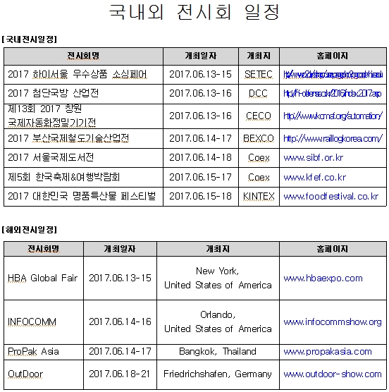 [안내](진흥회) 2017년 6월 2주 전시회 일정 안내