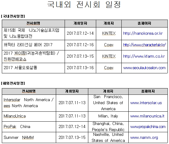제목 | [안내](진흥회) 2017년 7월 2주 전시회 일정 안내 |