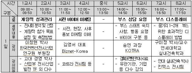 향상 교육을 통해 기업 전시담당자의 전문성 향상 및 마케팅 성과 극대화