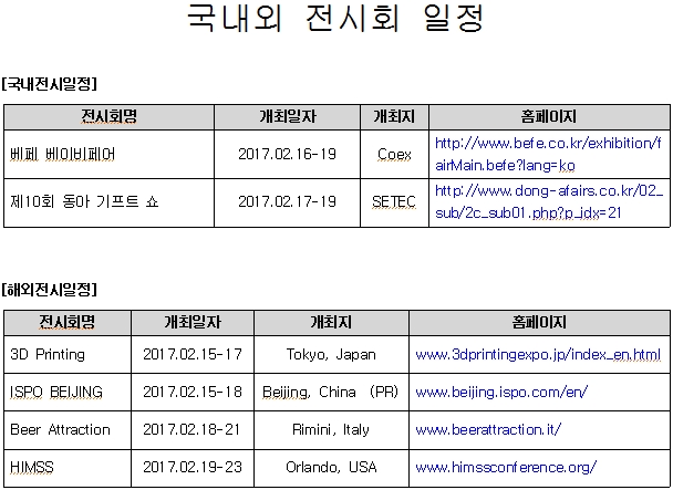 제목 | [안내](진흥회) 2017년 2월 3주 전시회 일정 안내 |