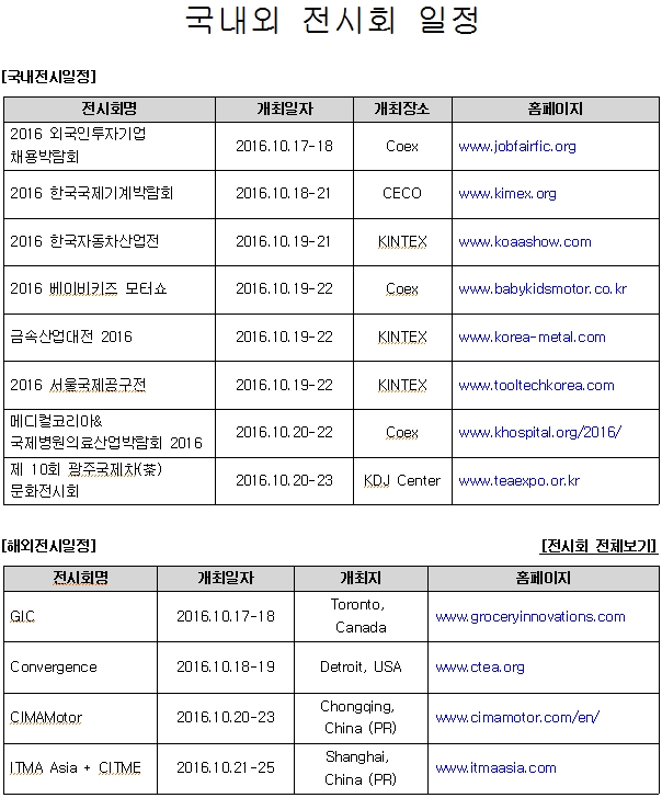 [안내](진흥회) 2016년 10월 3주 전시회 일정 안내