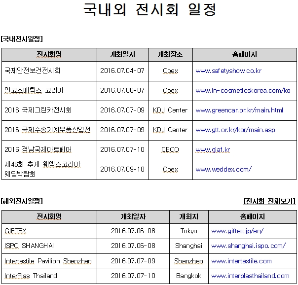 [안내](진흥회) 2016년 7월 1주 전시회 일정 안내