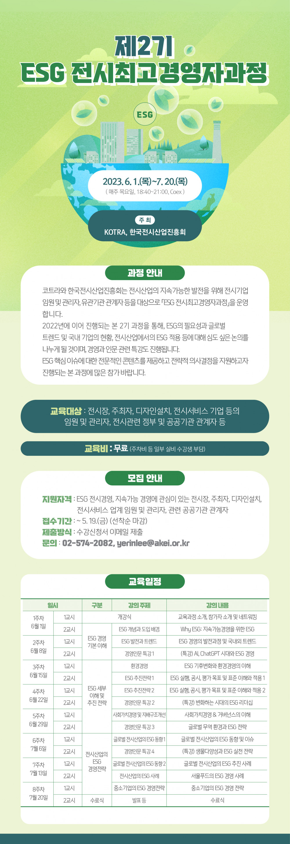 제목 | [안내] 2023년도 제2기 ESG전시최고경영자과정 안내 |