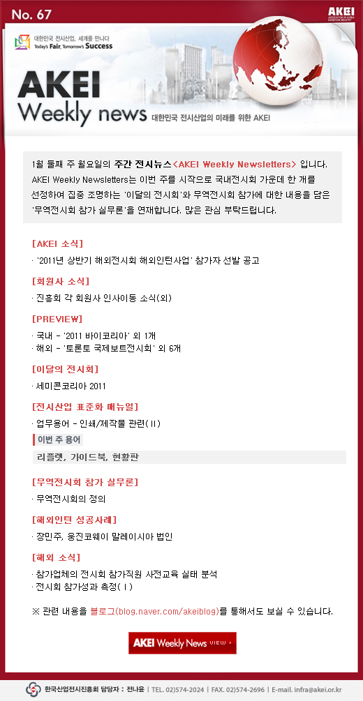 제목 | [안내](진흥회) WN 67호 '참가업체의 전시회 참가직원 사전교육 실태 분석' 외 |