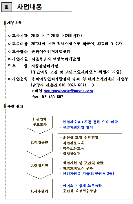 제목 | (송파여성인력개발센터) 2018년도 송파 영 마이스 아카데미 수요조사 |