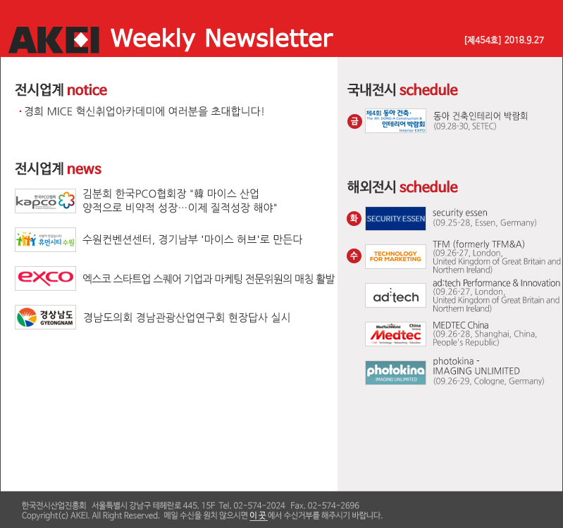 - 다음글[제453호] AKEI Weekly News Letter 453호 18.09.14