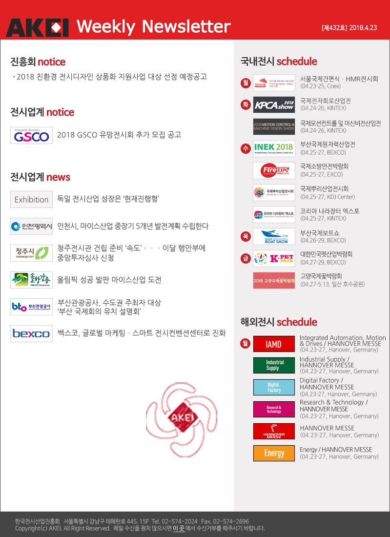 - 이전글[제433호] AKEI Weekly News Letter 433호 18.04.30