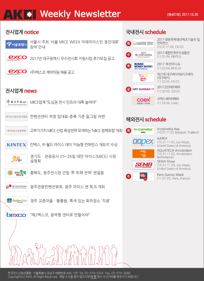 - 다음글[제406호] AKEI Weekly News Letter 406호 17.10.23