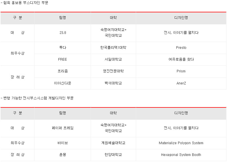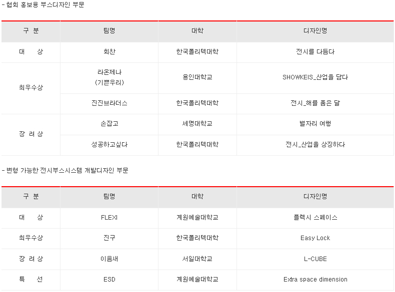 - 주 최 : 한국전시산업진흥회, 한국전시디자인협회